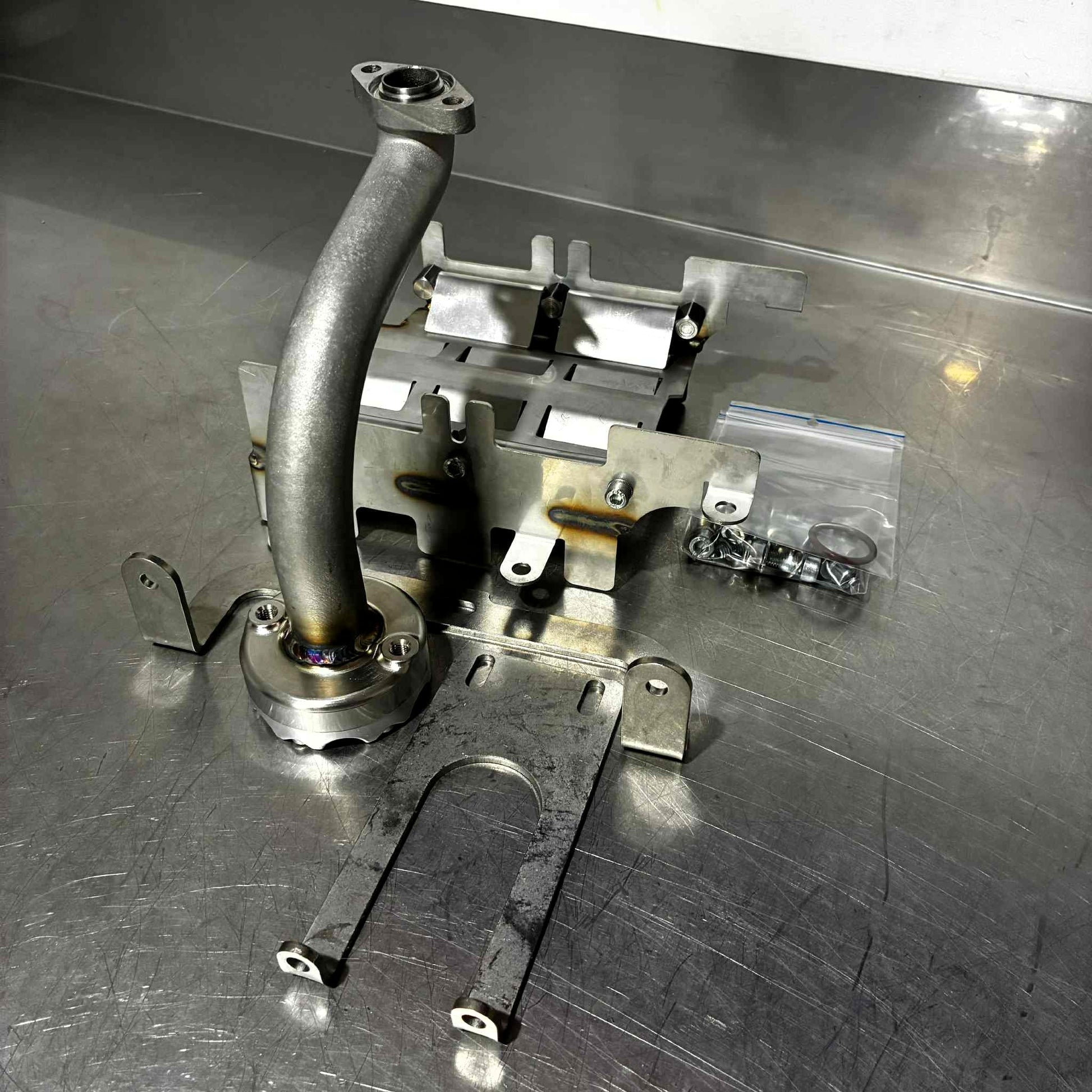 Ready to Bolt On: Complete with titanium drain bolts torqued and lock-wired.